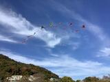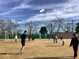 幼稚園より園児と保護者が来校、部活動などで活動していた生徒たちも一緒に凧揚げをしました。幼稚園伝統の連凧もきれいな空に舞い上がり、楽しい交流Timeとなりました。