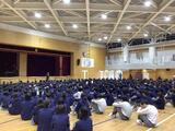 インフルエンザ拡大防止のため、全校生徒が各教室で参加しました。