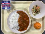 今日のメニューは、生徒たちに人気のハヤシライス、栄養たっぷりのツナと大豆のサラダ、さわやかな甘みのみかん、そして体づくりに欠かせない牛乳です。
