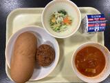 今日の給食は、朝焼きパンに、ほくほくのかぼちゃコロッケ、シャキシャキ食感が楽しいコーンサラダ、そして心も体も温まるミネストローネ、牛乳でした。特にミネストローネは、3年生からのリクエストに応えたメニューです。野菜のうまみがたっぷり溶け込んだスープは、寒い季節にぴったりで、食べると自然と笑顔が広がりました。